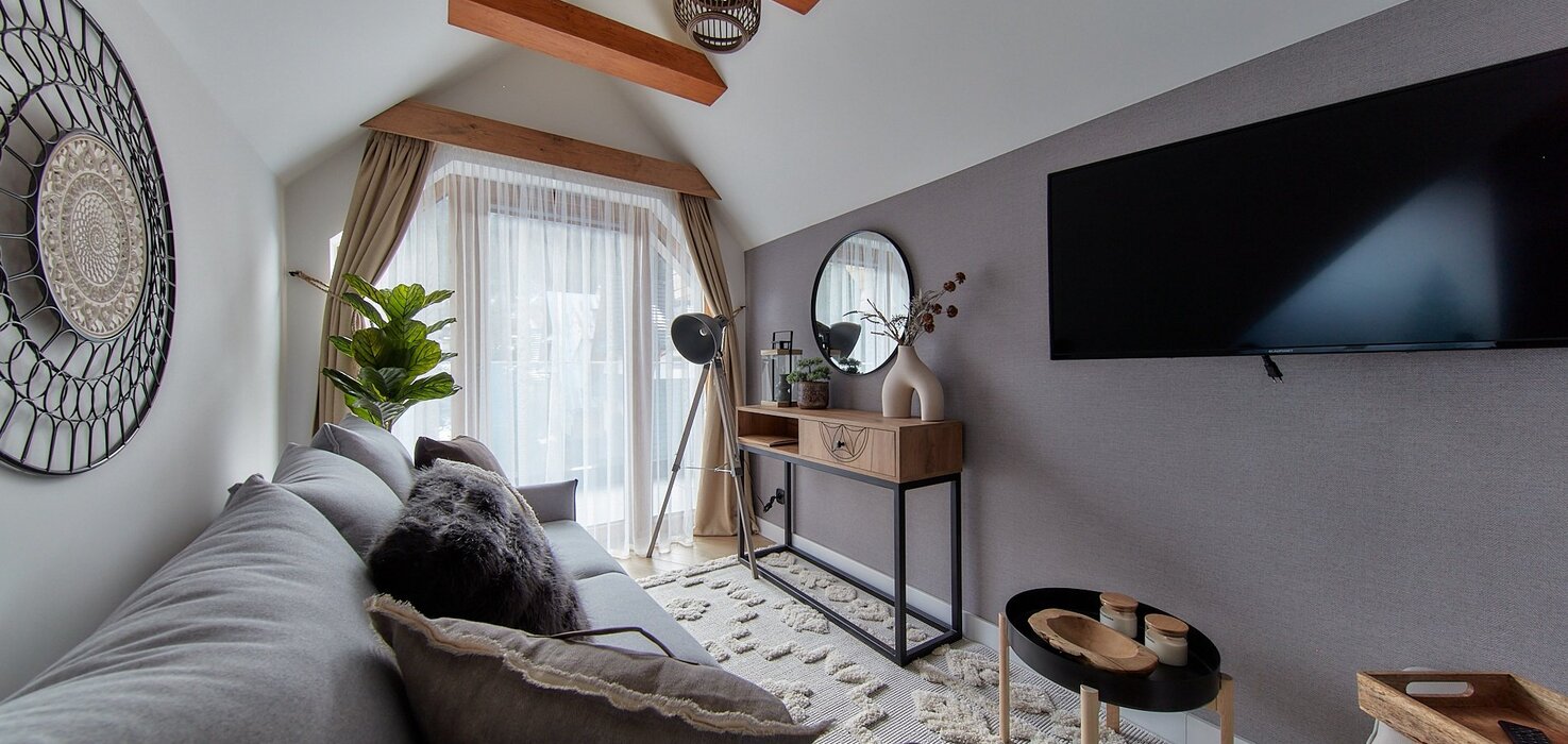 Teren wokół kompleksu jest ogrodzony i monitorowany. W apartamentach znajdują się balkony z pięknym widokiem na góry. Luksusowe wnętrza, jasne i przestronne apartamenty pozwolą poczuć się komfortowo i wyjątkowo.
